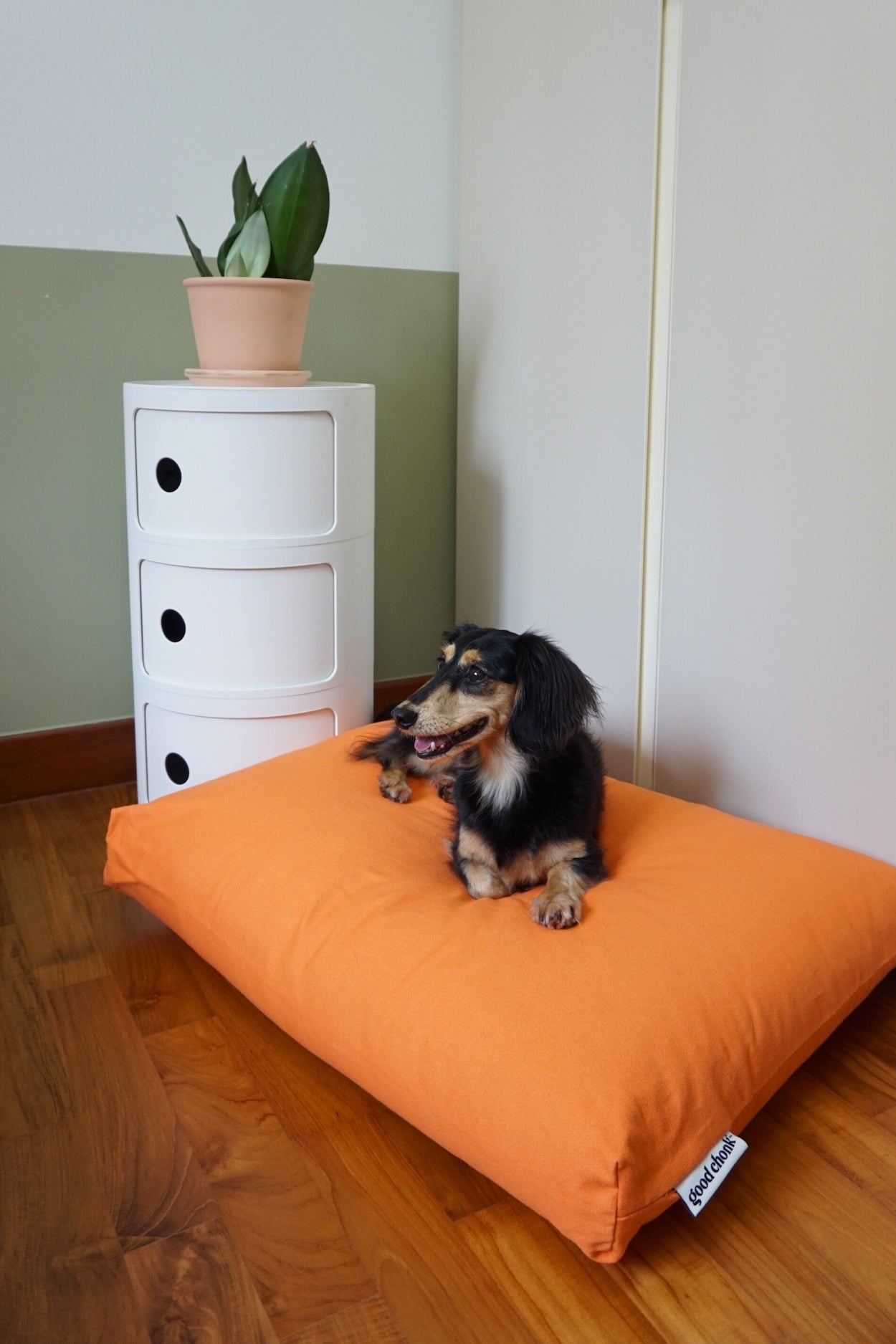 Give your pet the comfort they deserve with the Cloud Kapok Dog Bed in Sunrise Orange. Designed with sleek, minimalistic lines, this bed complements any décor while offering superior durability with its 100% cotton canvas exterior. Inside, the bed is filled with eco-friendly kapok, a sustainable material known for its temperature-regulating properties, keeping your pet cool in warmer weather. The plush yet supportive filling provides optimal comfort, helping to support your pet’s joints for restful sleep. Ideal for dogs of all ages, this bed blends style, sustainability, and luxury to give your furry friend a perfect place to relax.